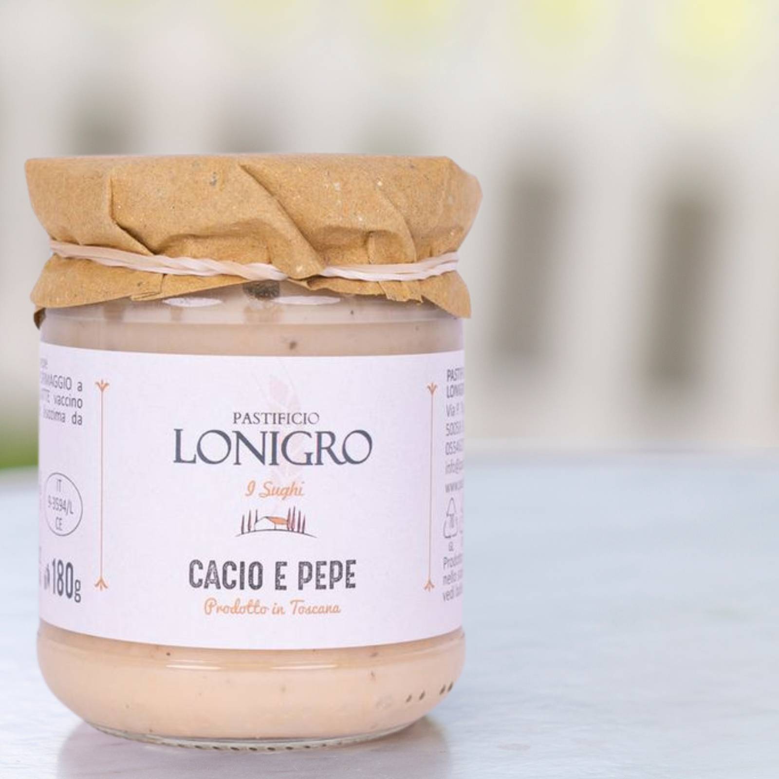 Cacio e Pepe Sauce is a traditional sauce made with cheese and pepper. It is a sauce with a strong and refined flavor. Creamy and velvety, it is prepared with selected raw materials, without the addition of colorings or preservatives, scrupulously following the recipes handed down from generation to generation. Enogastronomia F.lli Calamai selected it as one of the most traditional pasta sauce.